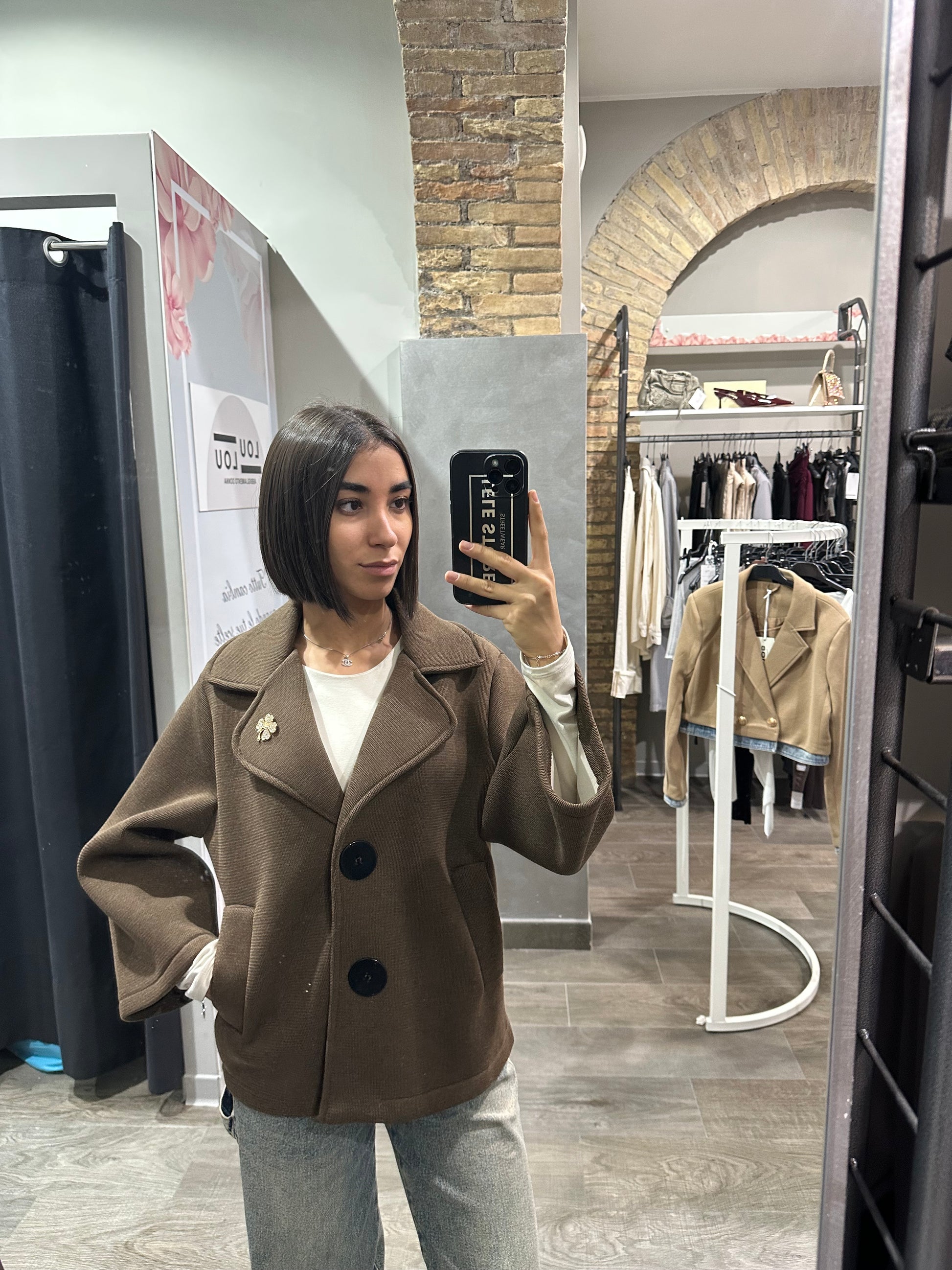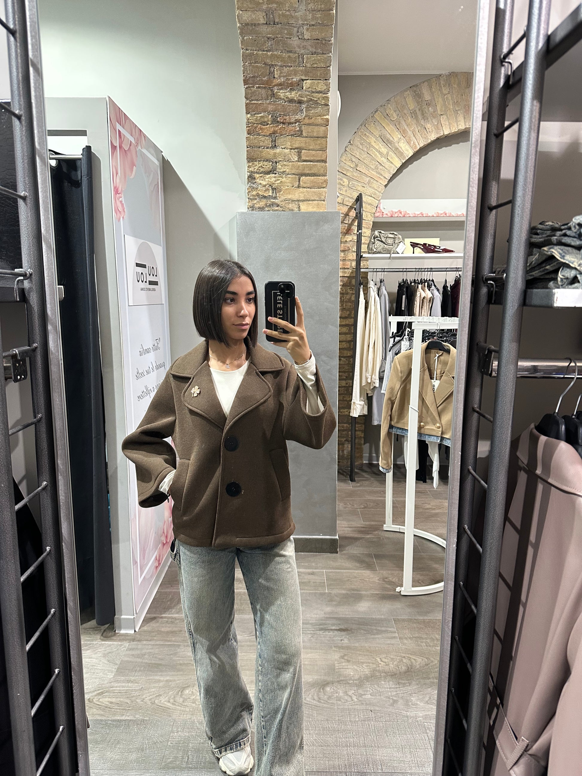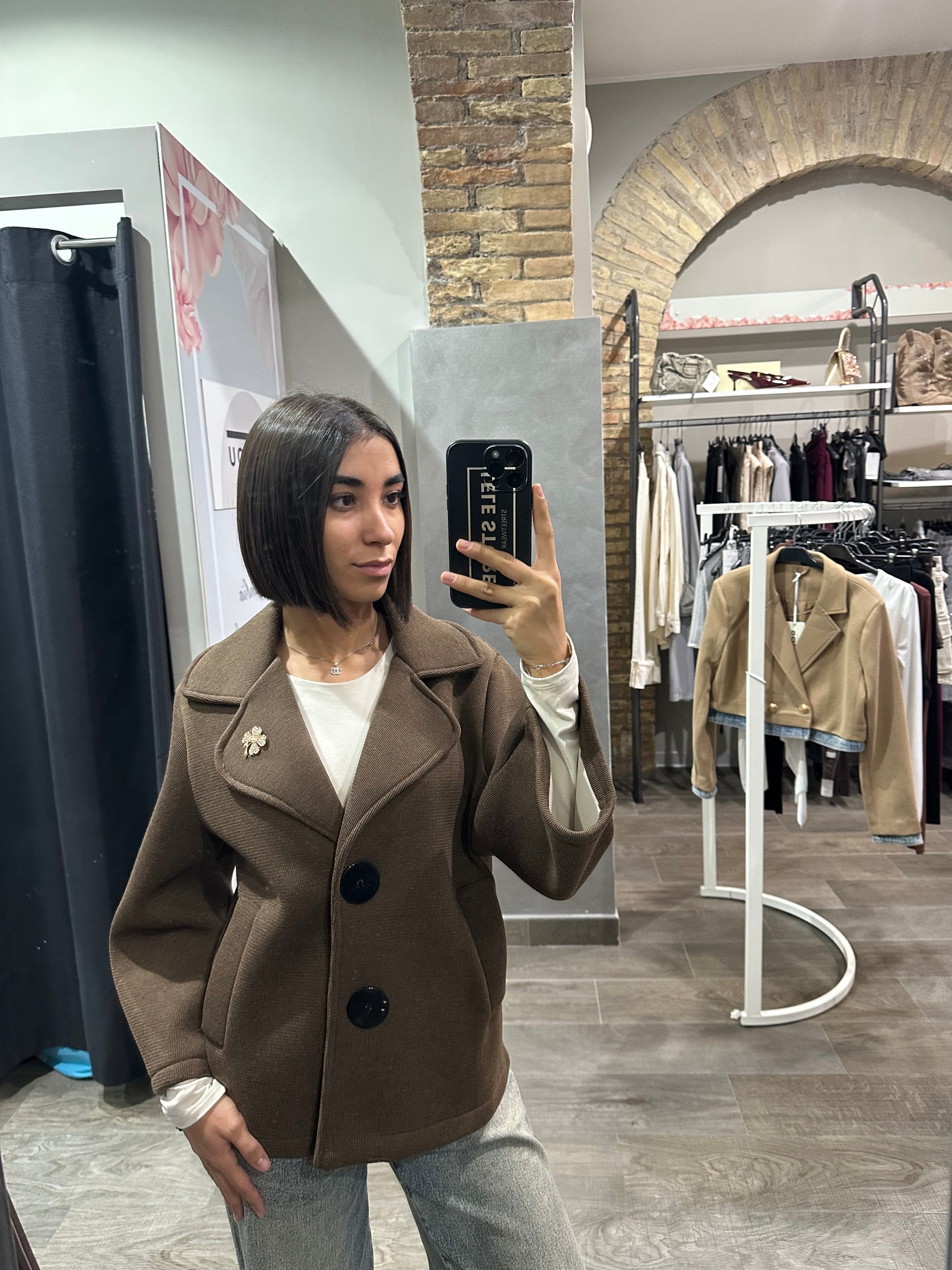 Cappotto a manica lunga, con bottoni centrali. Comodo e caldo