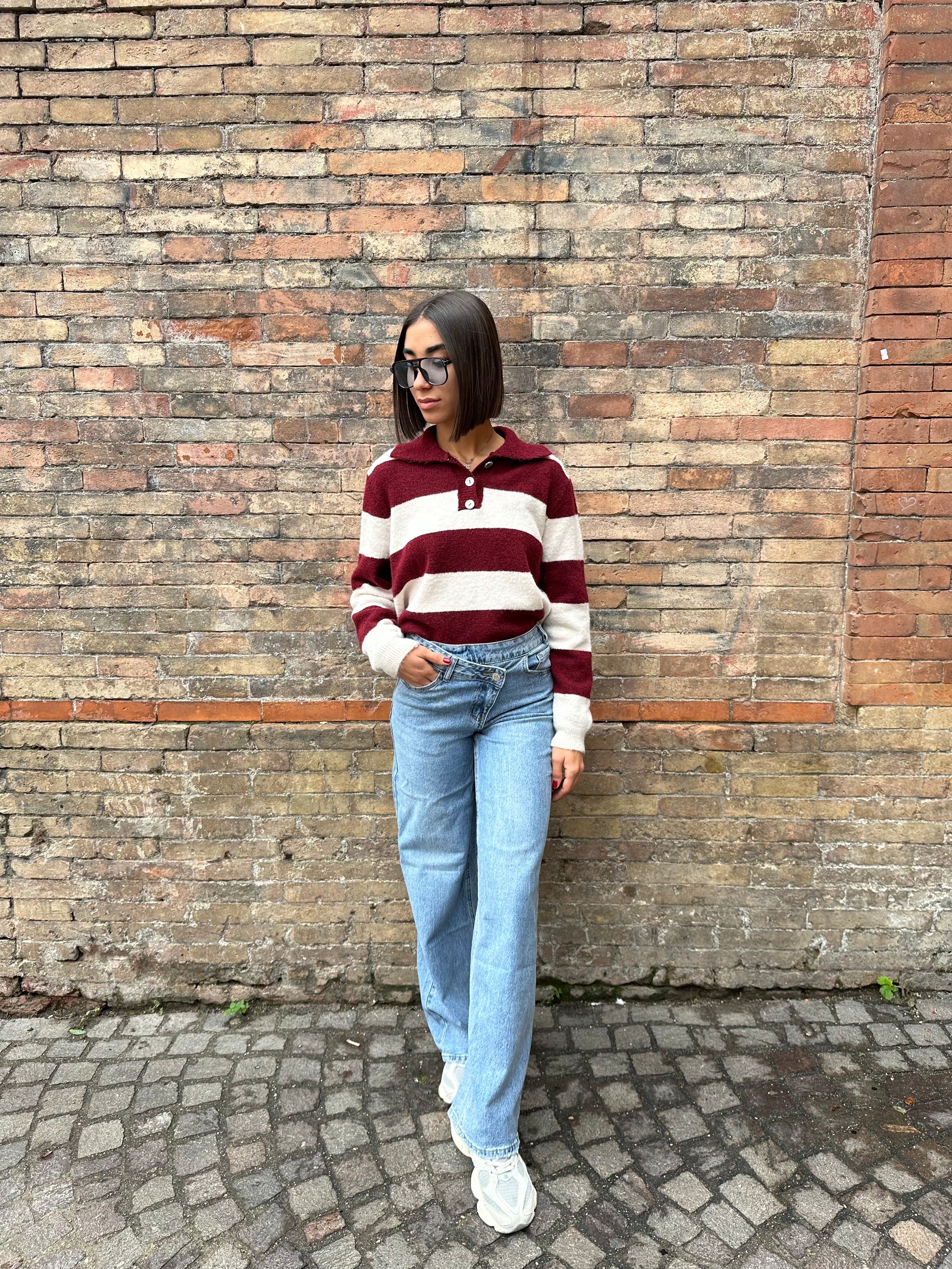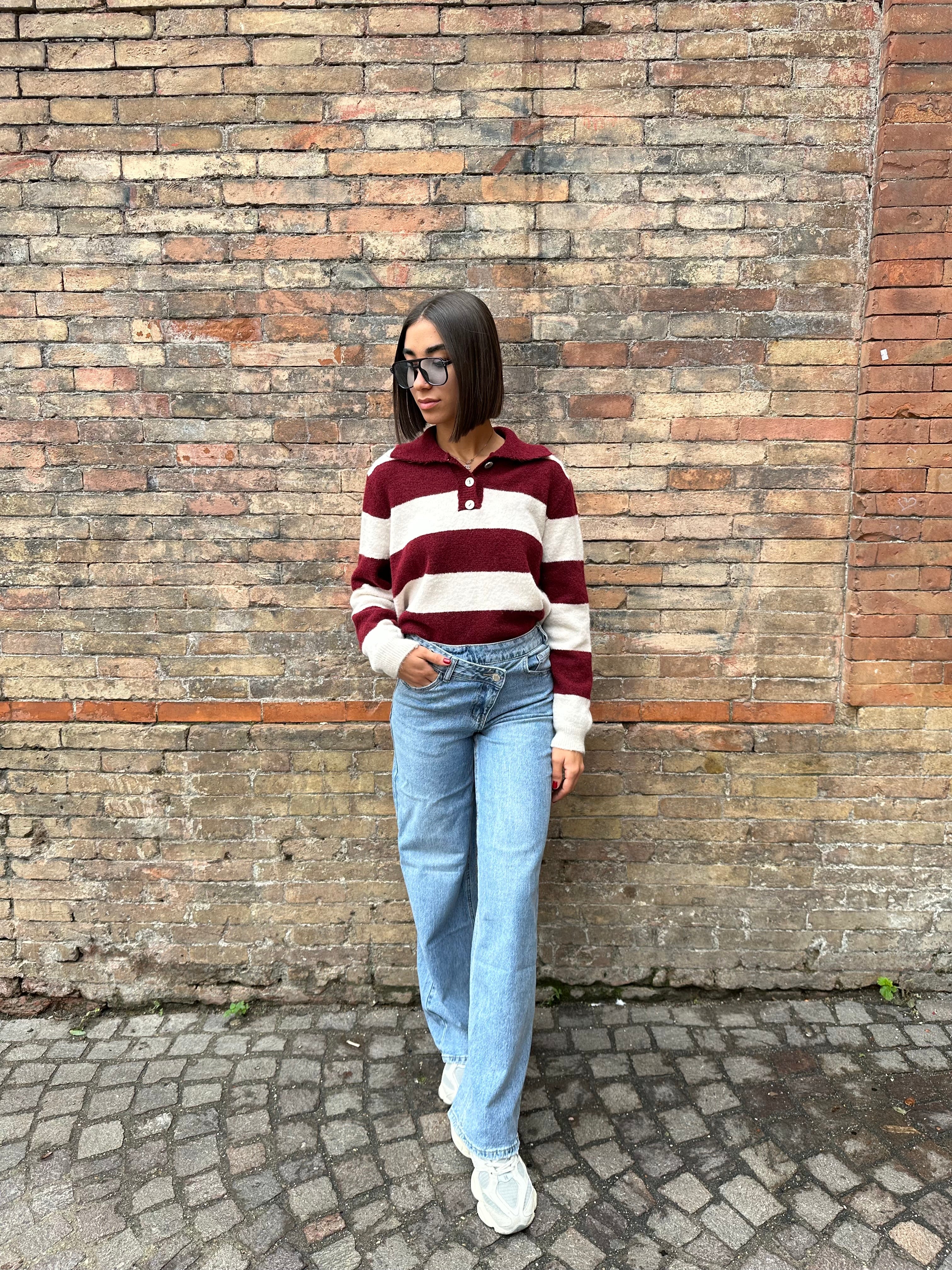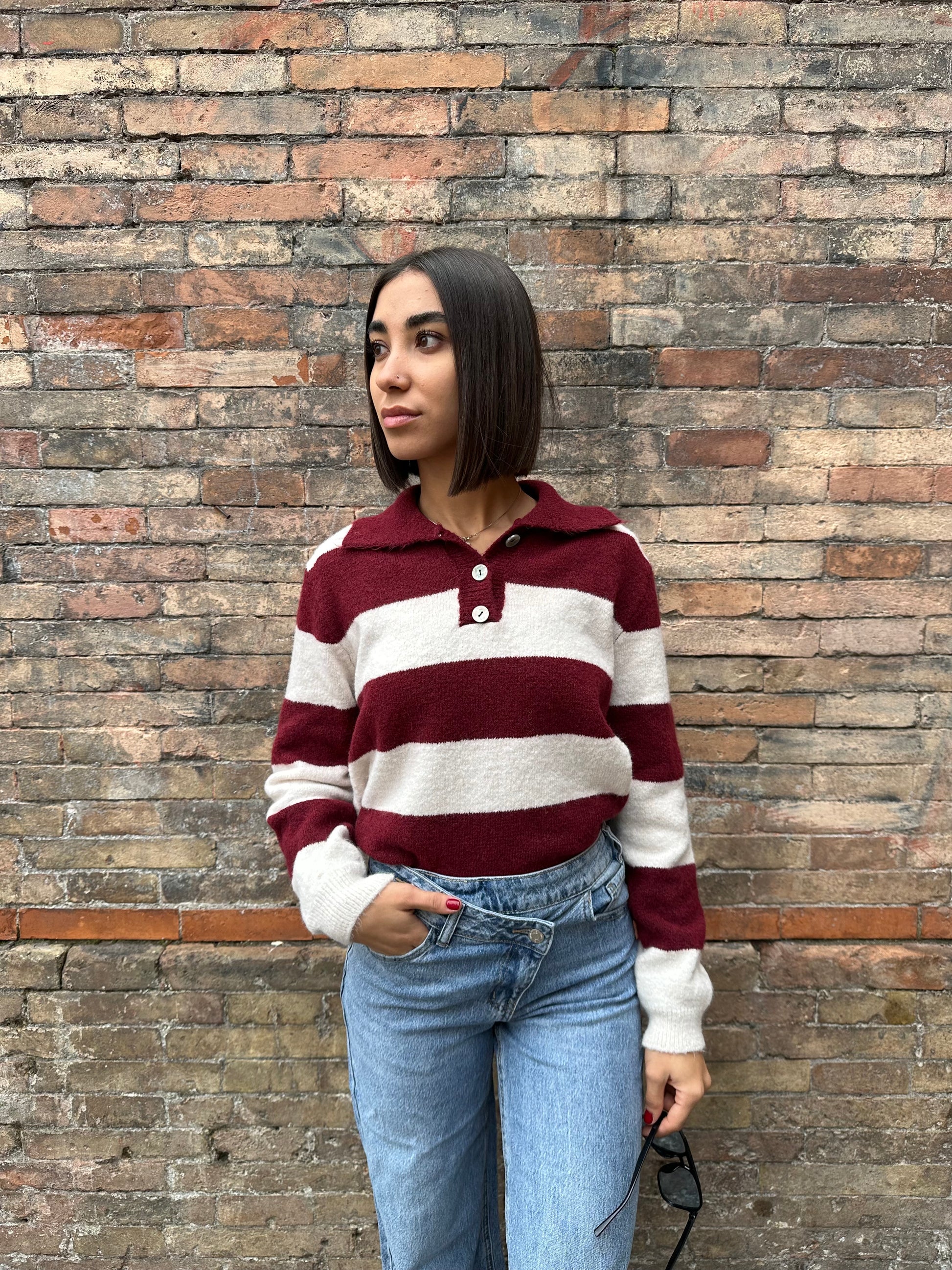 Polo a manica lunga con bottoni centrali e colletto. Comodo e caldo